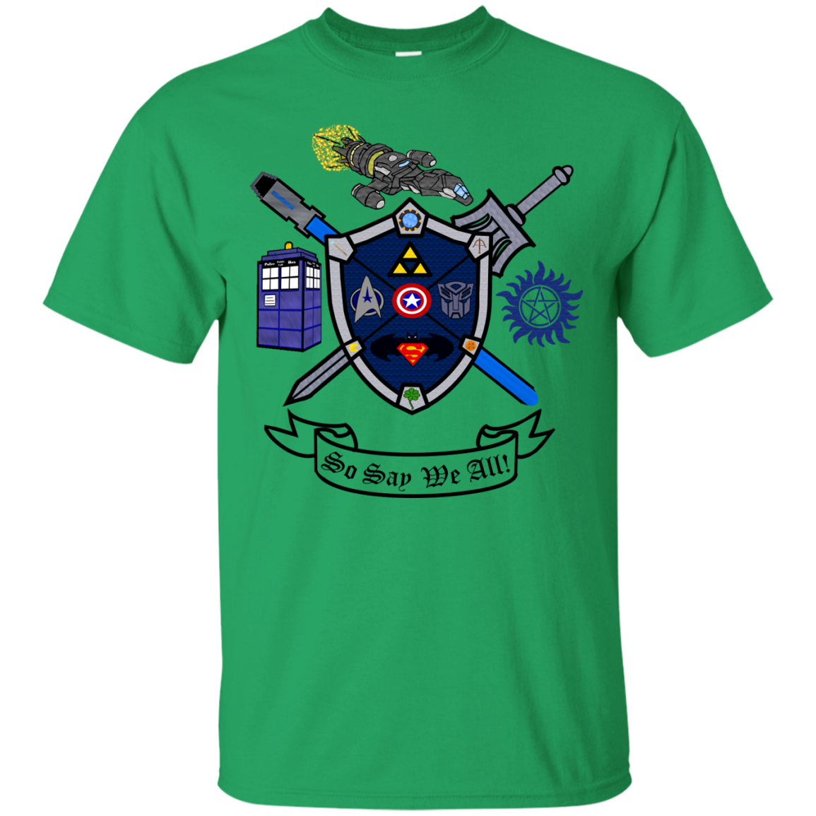Tags: 7-leaf-clover, anime, autobot, batman, battlestar-galactica, bsg, cartoons, comic, comic-con, convention-center, crest, dbz, doctor-who, dr-who, family-crest, fandom, firefly, funny, futurama, games, geek, geek-shirt, geeks, geeky, harry-potter, he-man, lightsaber, link, magic, mashup, movies, nerd, nerdy, pac-man, parody, pop-culture, san-diego-comic-convention, scifi, sdcc, serenity, spn, star-trek, star-wars, stargate, superman, supernatural, tardis, the-legend-of-zelda, the-walking-dead, transformers, trekkie, tv-shows, twd, video-games, videogames, whovian, zelda, zombie
